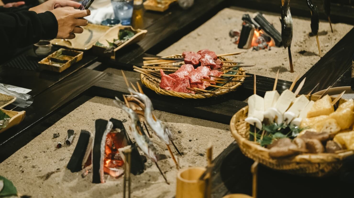 Nous avons préparé exclusivement pour notre clientèle une cuisine en plein air dans la "prairie millénaire", inaccessible au grand public. Vous serez sûrement satisfait par les produits locaux comme les barbecues de "boeuf rouge" difficile à trouver et les recettes traditionnelles de dengaku etc.